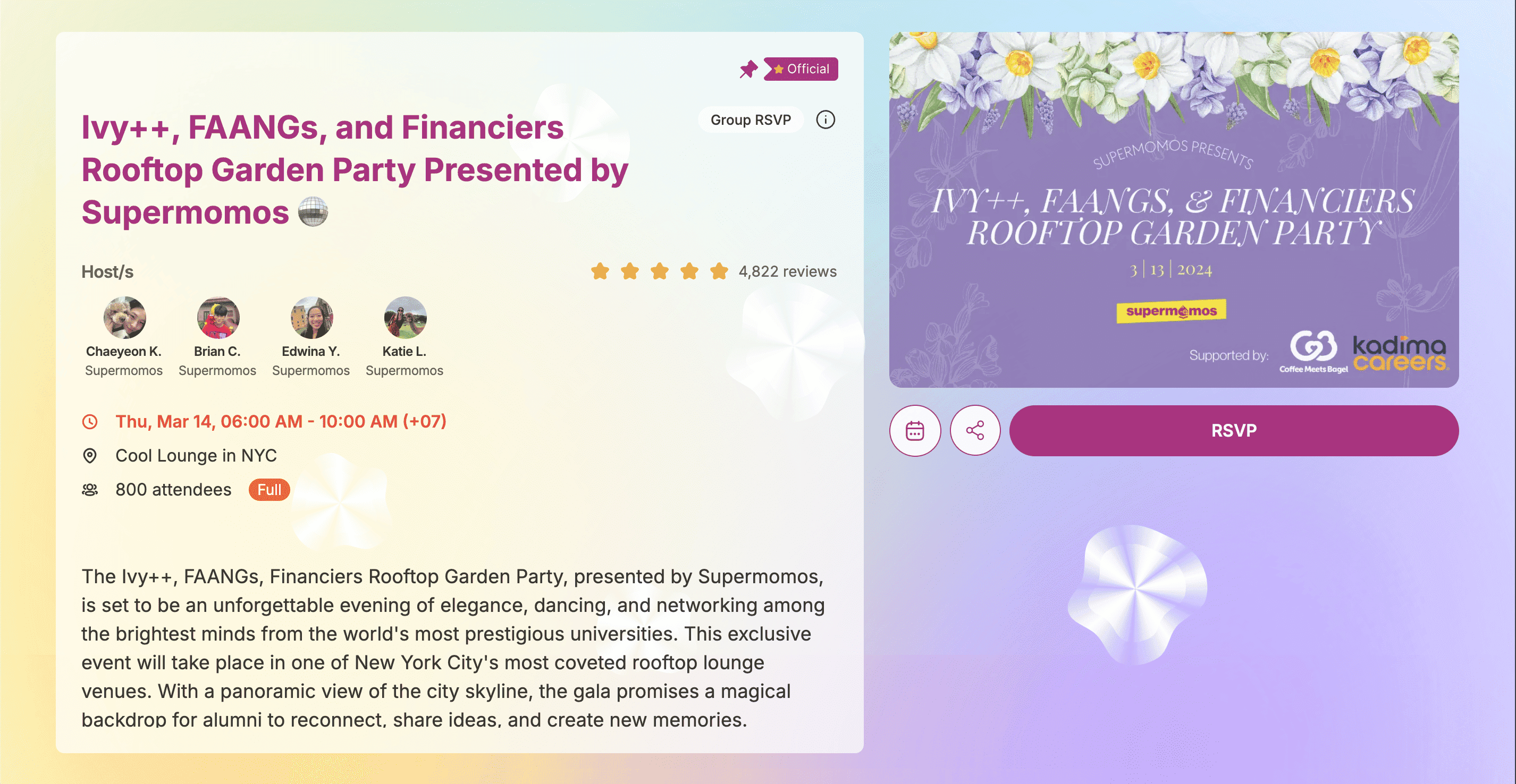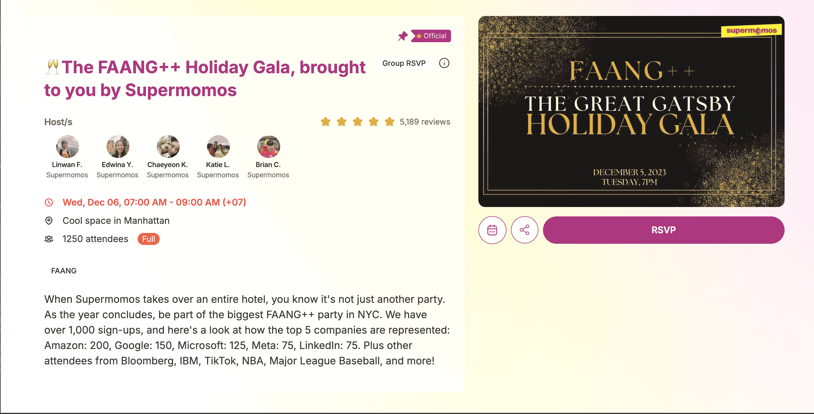 The Supermomos Galas are exclusive events designed for professionals from top companies and prestigious universities. These gatherings offer a unique opportunity to network with accomplished peers who are navigating similar career paths.